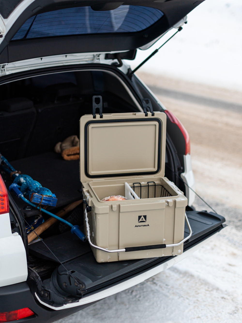 Данная модель продумана до мелочей: прорезиненные «ножки» на дне предотвращают скольжение и придают термоконтейнеру устойчивость, силиконовая прокладка в крышке делает контейнер герметичным и «запирает» запахи, которые могут привлечь диких животных. Переноска упрощается за счет металлической ручки с прорезиненной вставкой. А еще вы можете «настроить» контейнер внутри под себя: приобрести дополнительно корзину и разделитель.