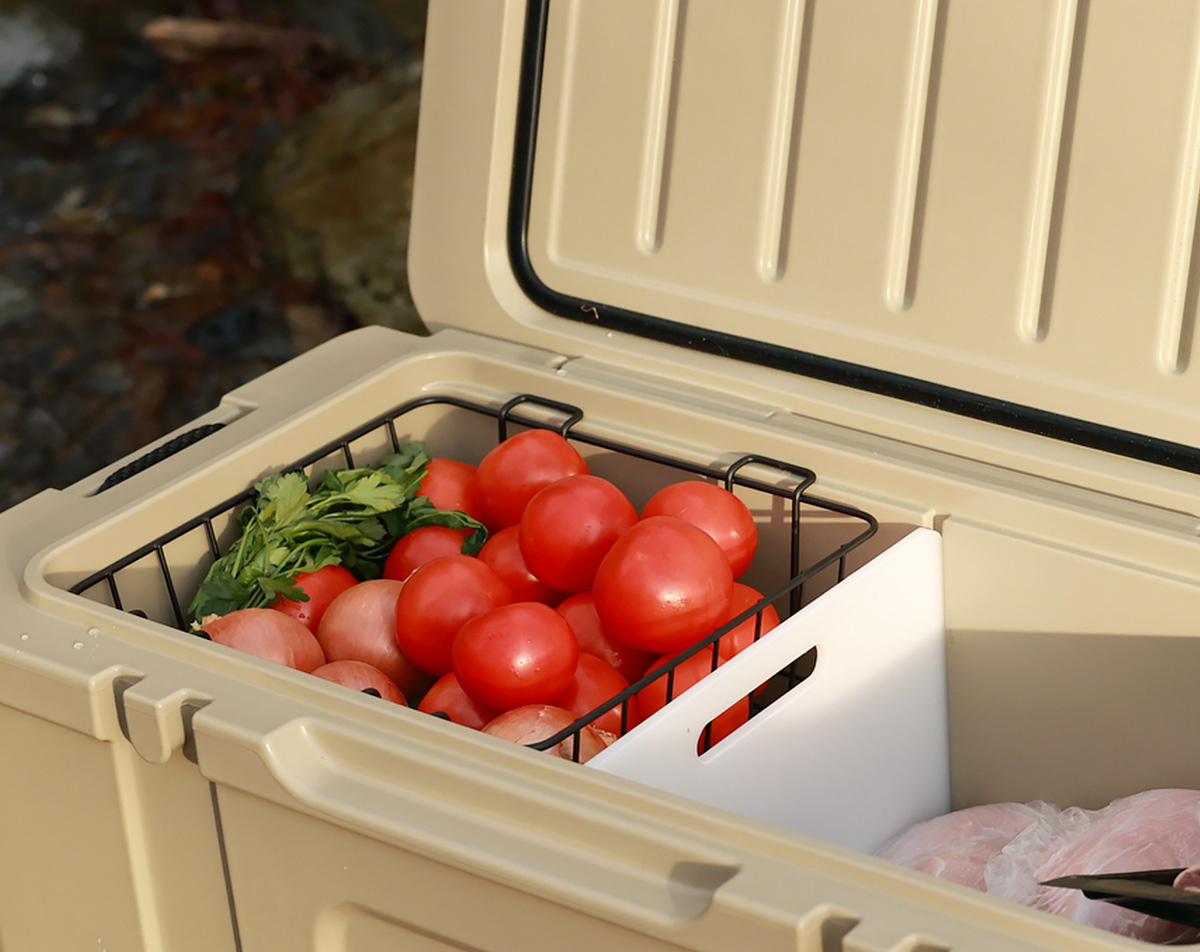 Данная модель продумана до мелочей: прорезиненные «ножки» на дне предотвращают скольжение и придают термоконтейнеру устойчивость, силиконовая прокладка в крышке делает контейнер герметичным и «запирает» запахи, которые могут привлечь диких животных. Транспортировка упрощается за счет крепких ручек по бокам. А еще вы можете «настроить» контейнер внутри под себя: приобрести дополнительно корзину и разделитель.