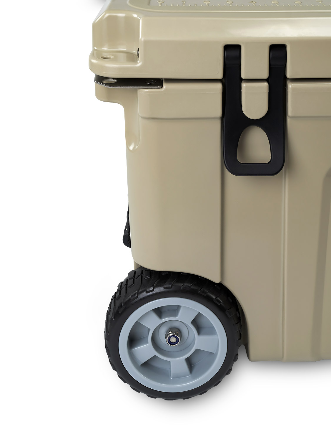 Данная модель продумана до мелочей: на крышке есть линейка для замера улова и подстаканники, силиконовая прокладка в крышке делает контейнер герметичным и «запирает» запахи, которые могут привлечь диких животных. Транспортировка упрощается за счет колес повышенной проходимости и удобной металлической ручки. А еще вы можете «настроить» контейнер внутри под себя: приобрести дополнительно корзину и разделитель.