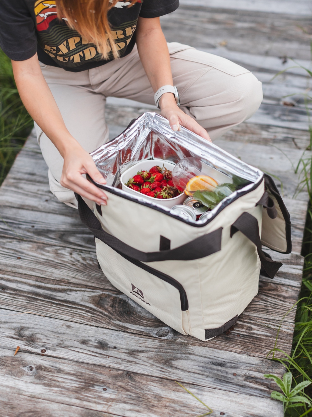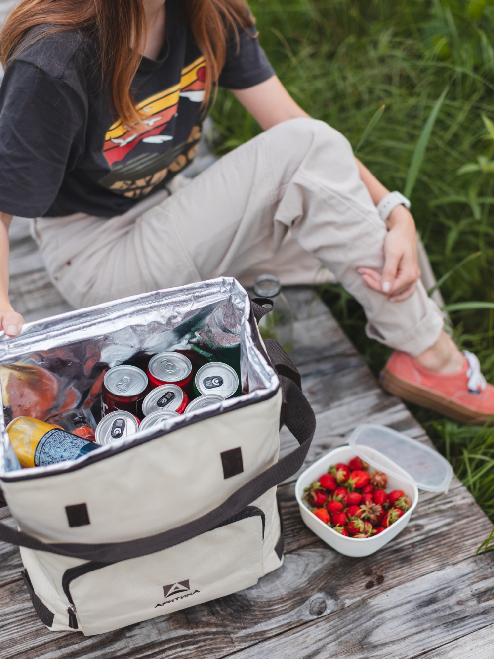 Когда нужно быстро достать что-то из термосумки, не хочется возиться с неудобной застежкой. В обновленной версии нашей классической сумки-холодильника появился второй бегунок — теперь молнию можно открывать с двух сторон и посередине. Это удобно: проще добраться до всего необходимого с любой удобной для вас стороны.