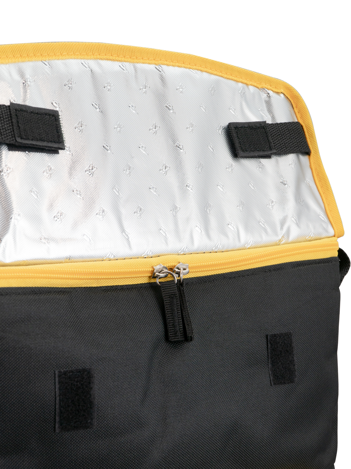 Когда нужно быстро достать что-то из термосумки, не хочется возиться с неудобной застежкой. В обновленной версии нашей классической сумки-холодильника появился второй бегунок — теперь молнию можно открывать с двух сторон и посередине. Это удобно: проще добраться до всего необходимого с любой удобной для вас стороны.