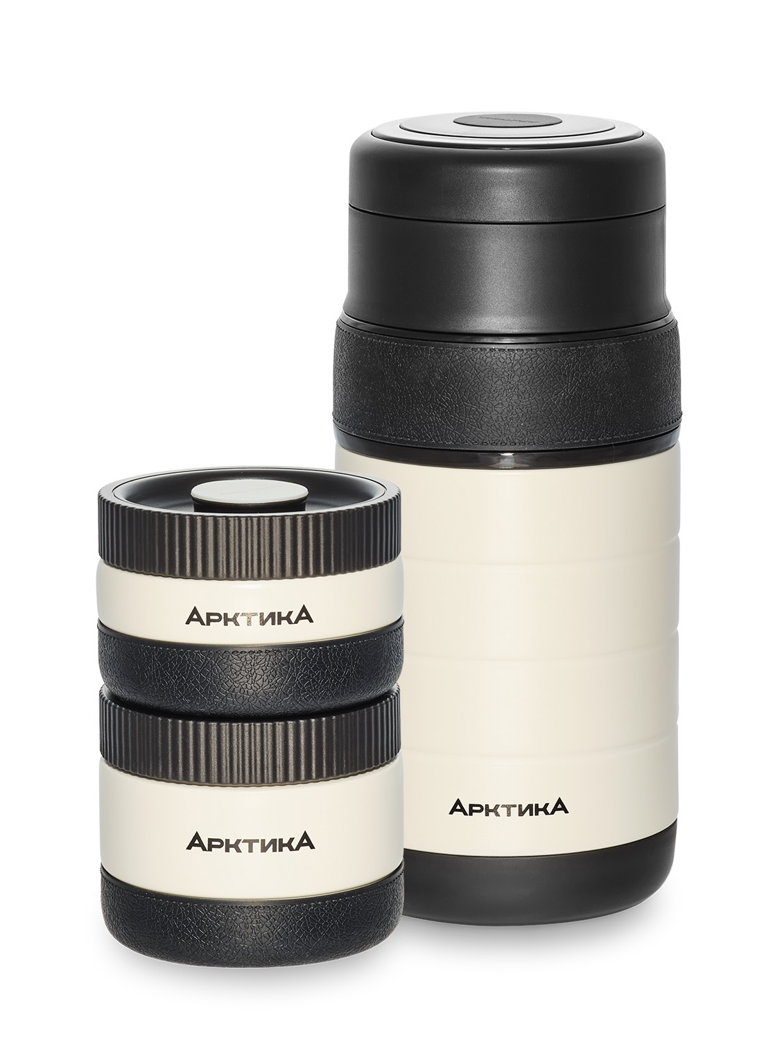 Бежевый термос для еды с контейнерами на 1.3л (уценка)