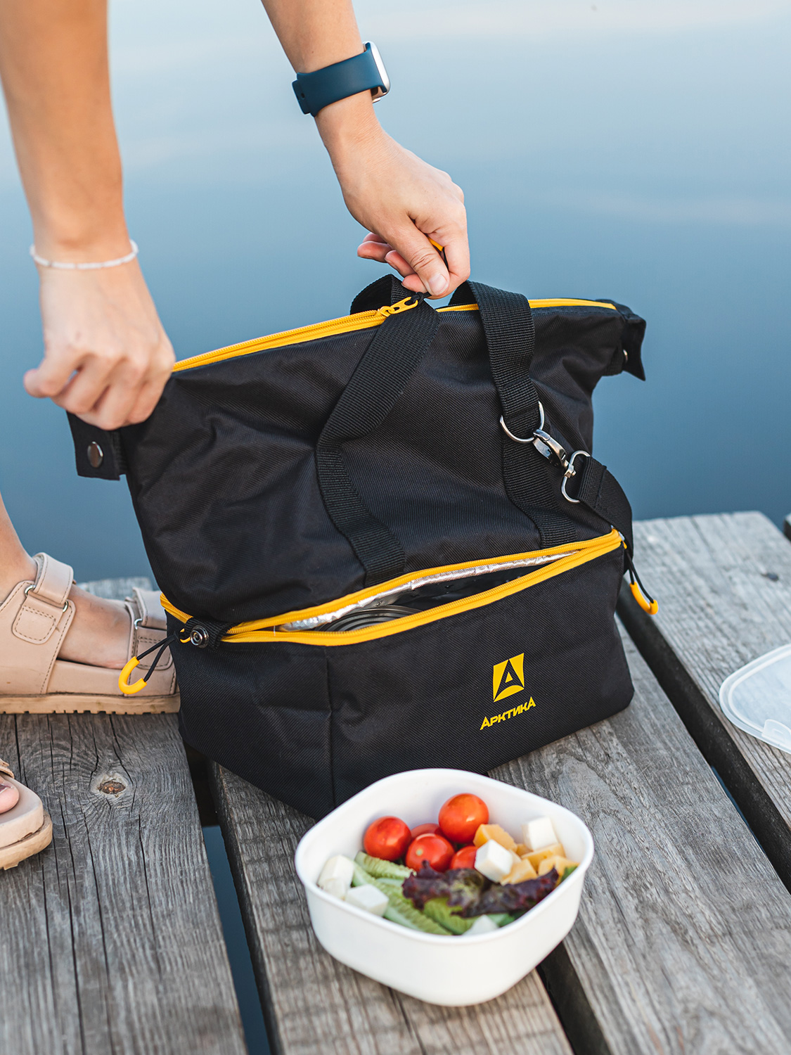 Термосумка возьмет на себя сохранность продуктов той температуры, которая вам нужна – благодаря фольгированному слою. Два отделения для раздельного хранения помогут расположить продукты так, как вам удобно, чтобы те не перемешались. Габариты нижнего отделения сумки : Д 260 мм х Ш 160 мм х В 125 мм. Идеальный вариант для пикников, пляжного отдыха и семейных поездок, особенно с маленьким ребенком.