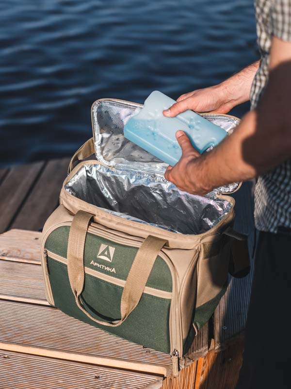 Есть наружный карман для хранения мелочей. Объем холодильного отсека — 13,5л. Рекомендуется использовать вместе с аккумуляторами холода серии АТМ из расчета не менее 10% от объема термосумки. Гарантия – 1 год.