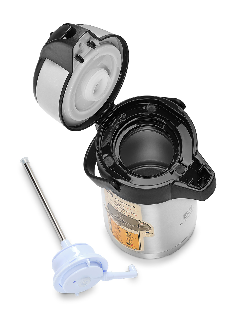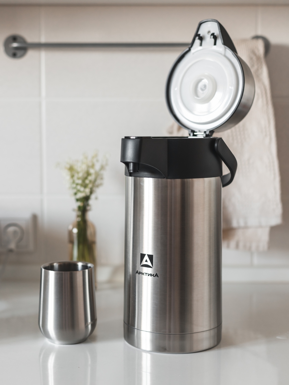 Незаменим в загородном доме и на даче, на мероприятиях и в большом кругу друзей и родных. Есть удобная ручка для переноски. Обратите внимание: настольный термос рассчитан на использование на устойчивой ровной поверхности и в наполненном виде всегда должен оставаться в вертикальном положении. Лежа или при наклоне во время транспортировки термос может протечь. Гарантия на вакуум – 5 лет.