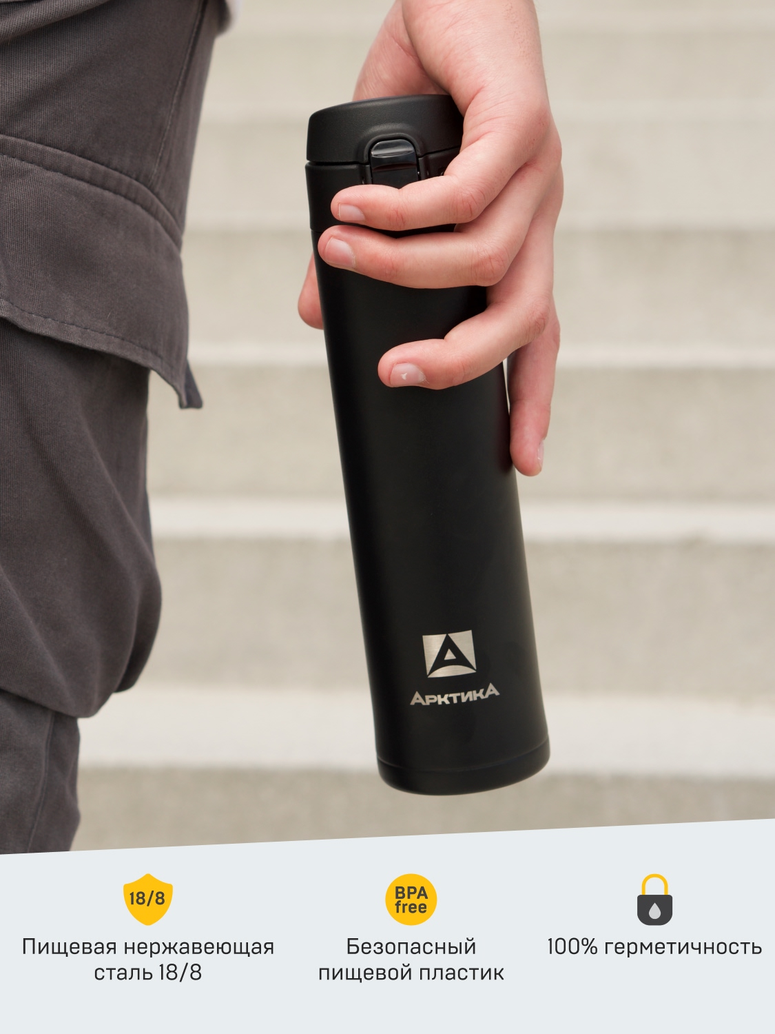 Серия 701 порадует новым подходом к выбору объема: на выбор их два — 420 мл и 520 мл. Узкий корпус выполнен из долговечной и прочной нержавеющей стали, питьевая система – из экологичного и безопасного для здоровья пищевого пластика (BPA free). На выбор доступно 3 универсальные расцветки, которые идеально подходят как мужчинам, так и женщинам. Гарантия на вакуум – 5 лет.