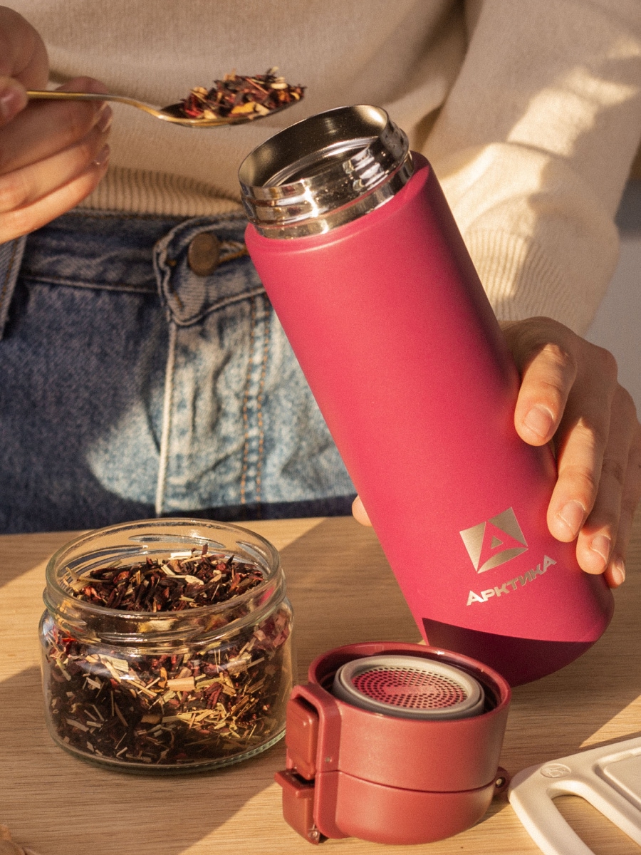 Термокружка 0.47л серии 703 «Вишня» с ситечком (уценка)