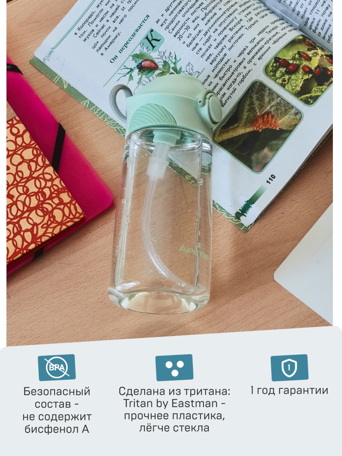 Тритановая бутылочка 0.45л серии 714 мятная детская