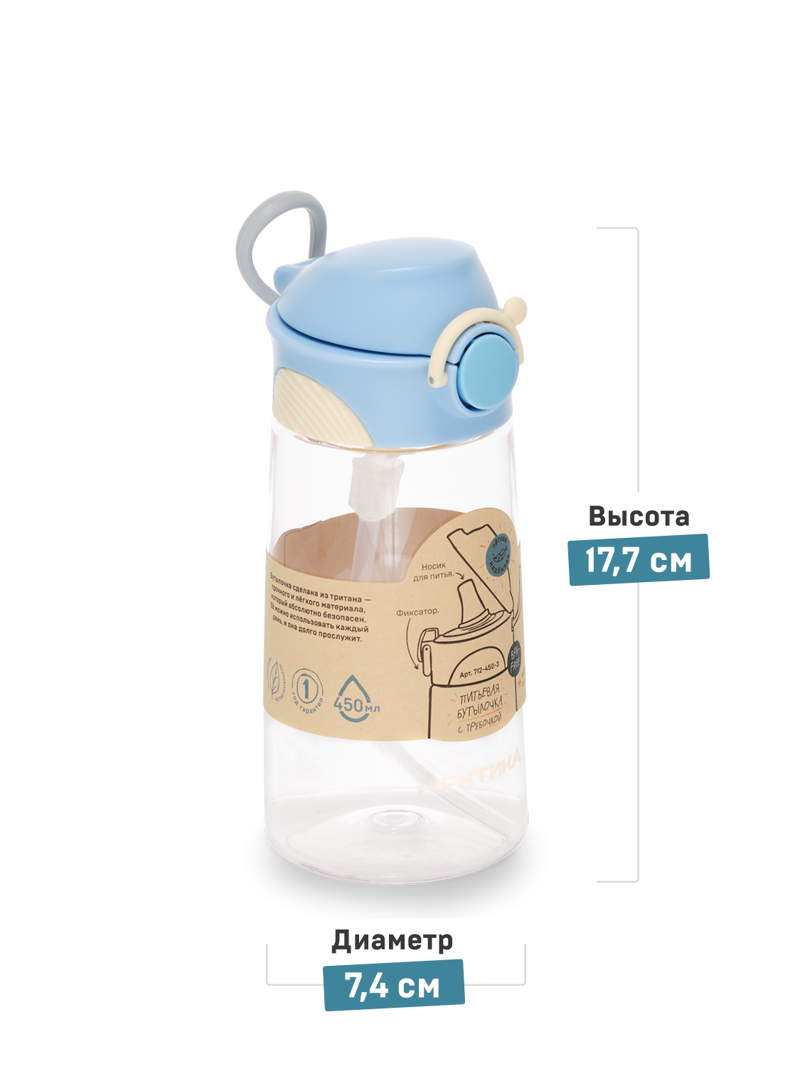Тритановая бутылочка 0.45л серии 714 голубая детская