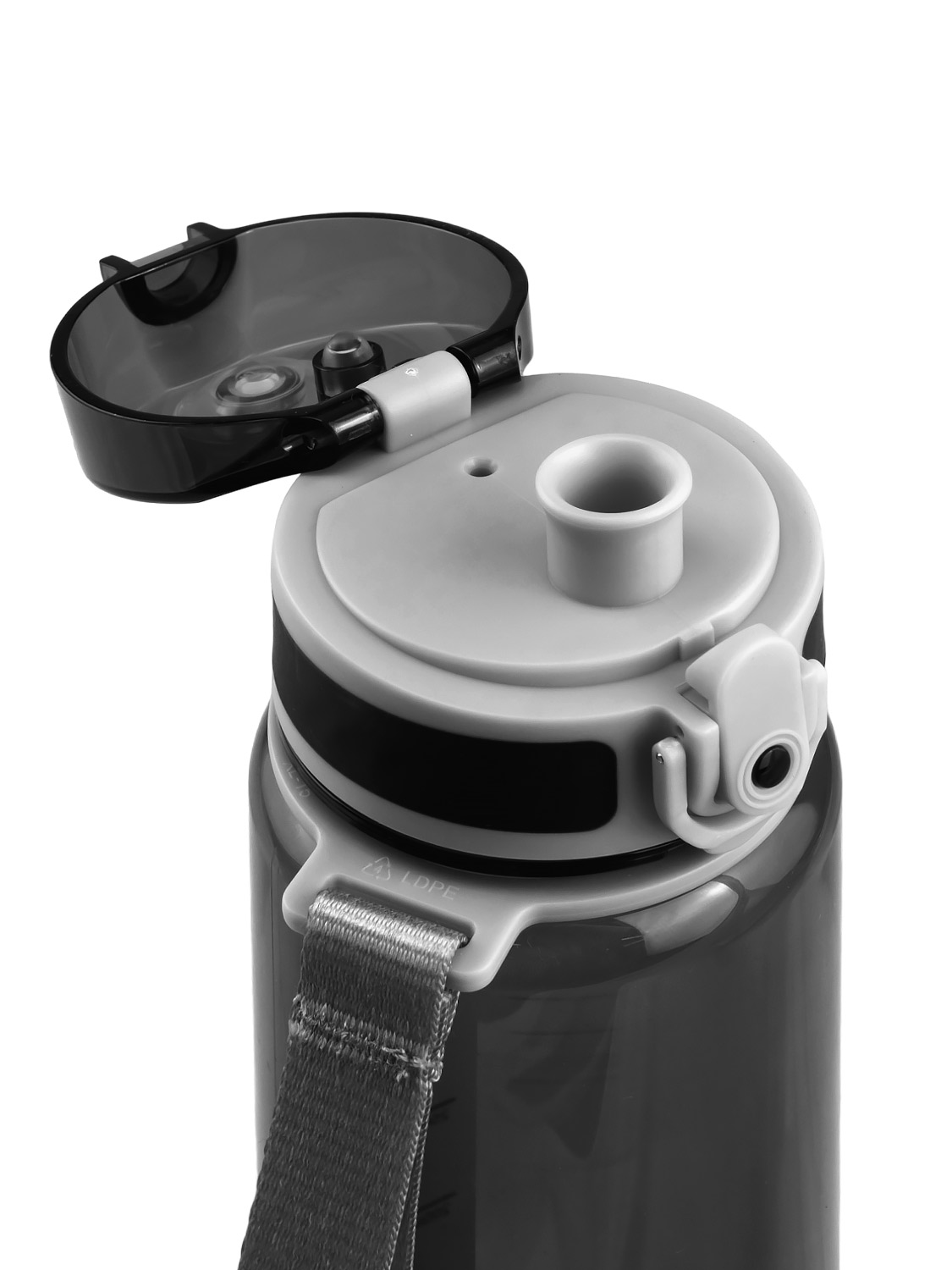 Носик бутылки надежно защищен откидной крышкой от любых загрязнений, а замок с фиксатором предотвращает случайное открывание. Бутылку можно легко открыть одной рукой и пить любимый напиток на ходу благодаря кнопке и удобному носику. Текстильный ремешок освободит руки при переноске бутылки, а ситечко-фильтр позволит пить охлажденный компот, оставляя остатки ягод и фруктов внутри.
