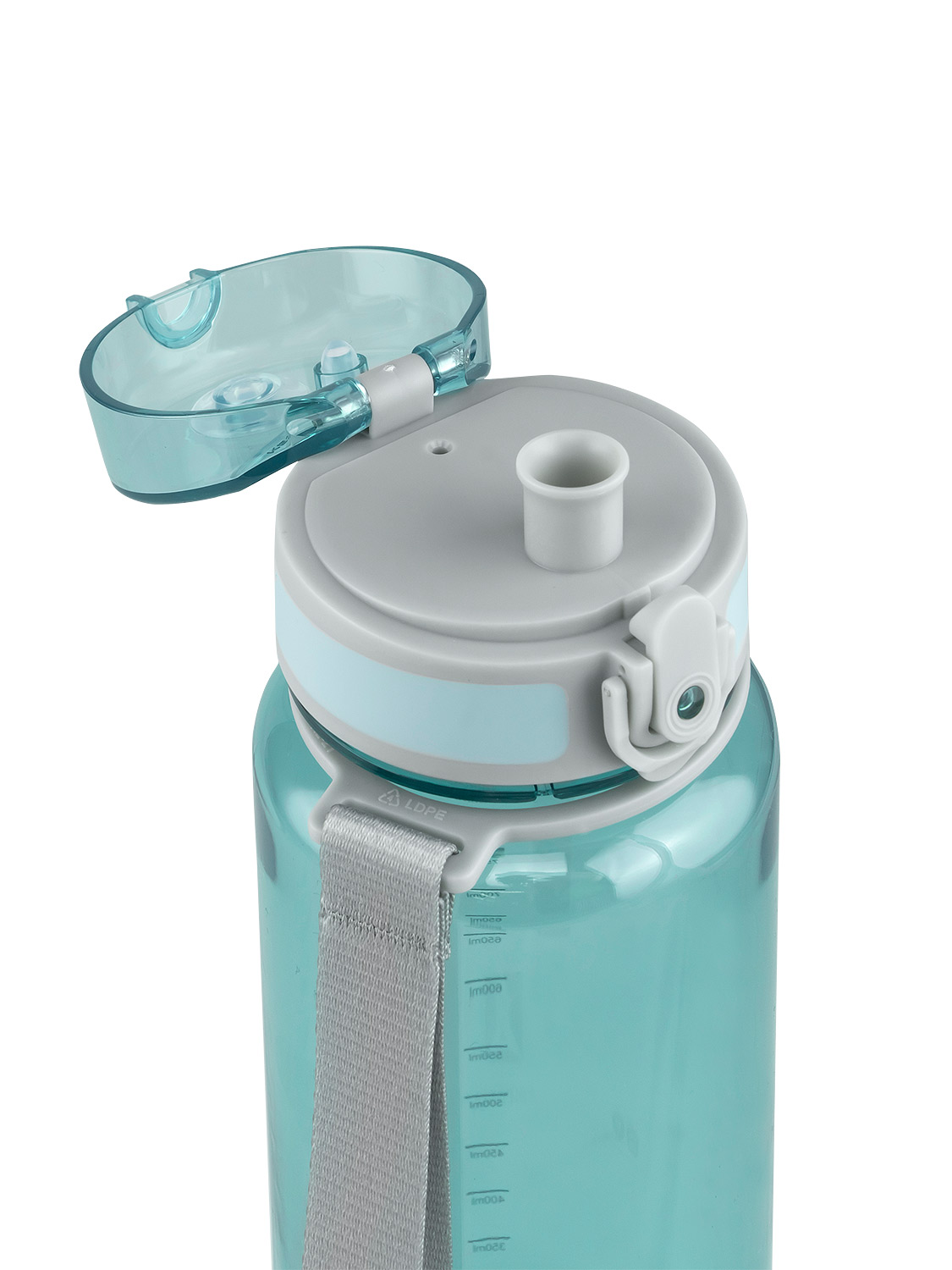 Носик бутылки надежно защищен откидной крышкой от любых загрязнений, а замок с фиксатором предотвращает случайное открывание. Бутылку можно легко открыть одной рукой и пить любимый напиток на ходу благодаря кнопке и удобному носику. Текстильный ремешок освободит руки при переноске бутылки, а ситечко-фильтр позволит пить охлажденный компот, оставляя остатки ягод и фруктов внутри.