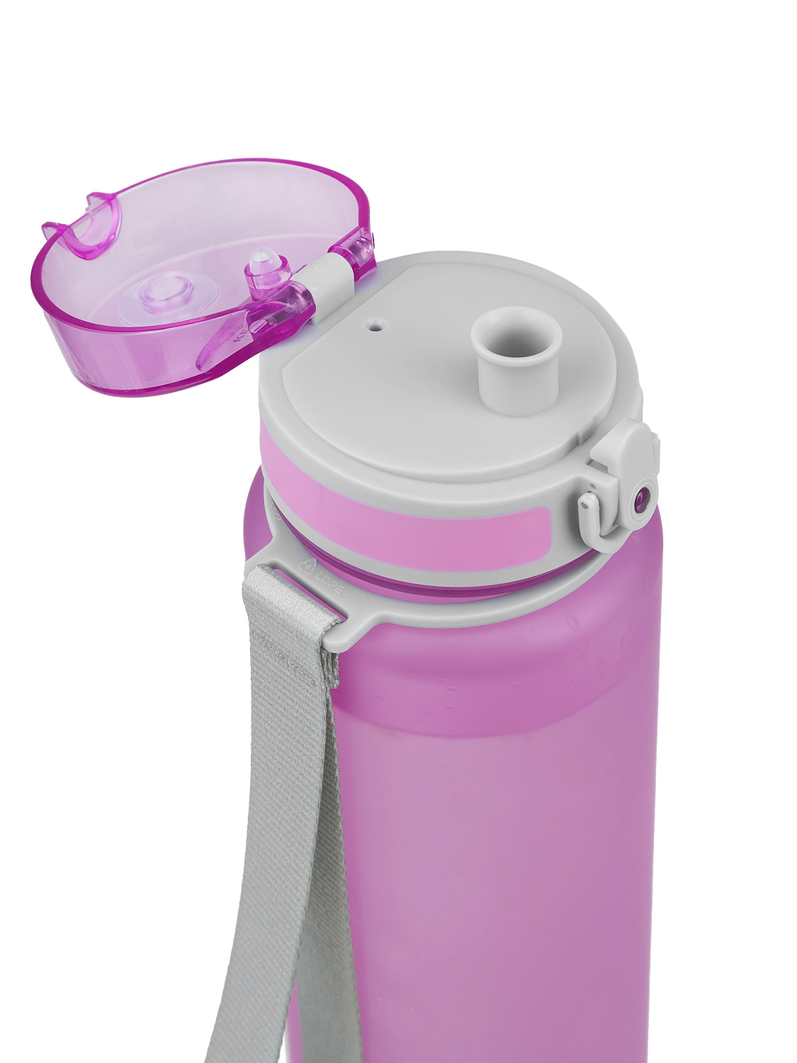 Носик бутылки надежно защищен откидной крышкой от любых загрязнений, а замок с фиксатором предотвращает случайное открывание. Бутылку можно легко открыть одной рукой и пить любимый напиток на ходу благодаря кнопке и удобному носику. Текстильный ремешок освободит руки при переноске бутылки, а ситечко-фильтр позволит пить охлажденный компот, оставляя остатки ягод и фруктов внутри.