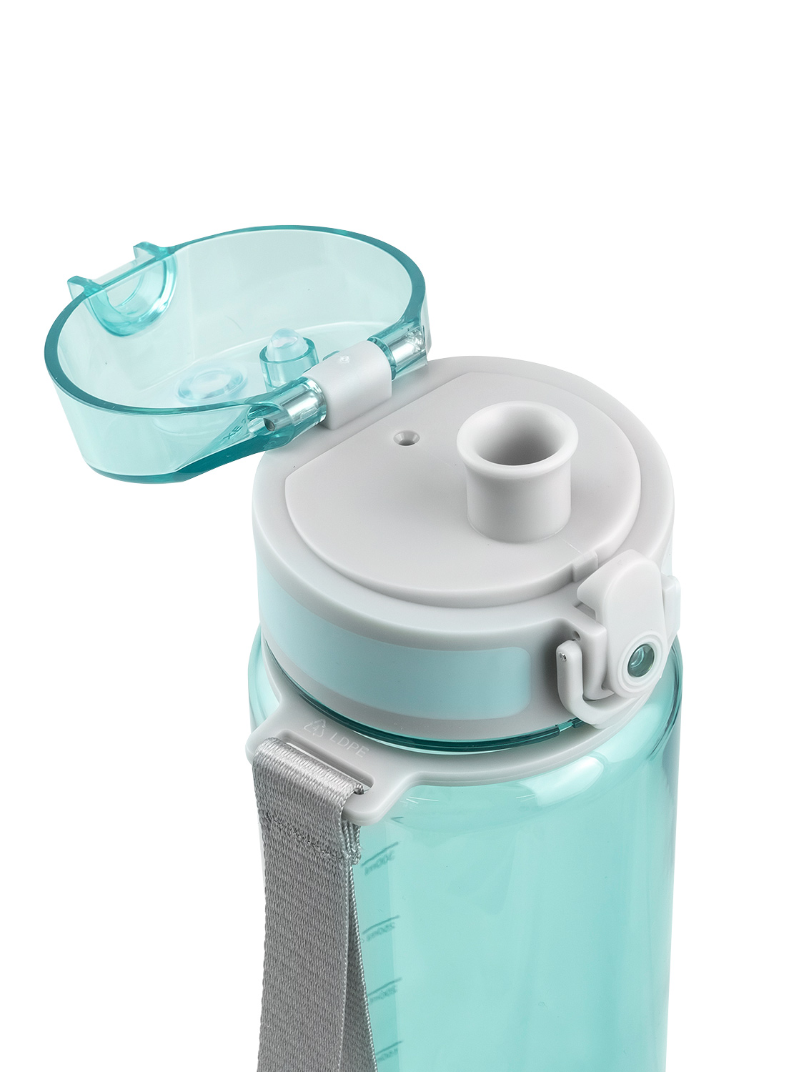 Носик бутылки надежно защищен откидной крышкой от любых загрязнений, а замок с фиксатором предотвращает случайное открывание. Бутылку можно легко открыть одной рукой и пить любимый напиток на ходу благодаря кнопке и удобному носику. Текстильный ремешок освободит руки при переноске бутылки, а ситечко-фильтр позволит пить охлажденный компот, оставляя остатки ягод и фруктов внутри.