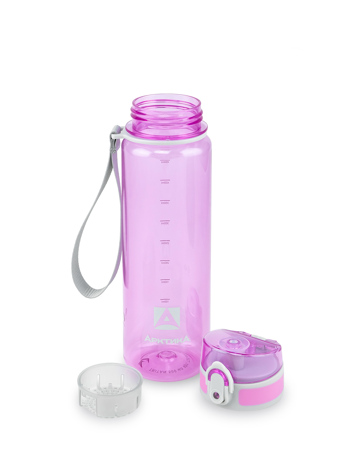 Носик бутылки надежно защищен откидной крышкой от любых загрязнений, а замок с фиксатором предотвращает случайное открывание. Бутылку можно легко открыть одной рукой и пить любимый напиток на ходу благодаря кнопке и удобному носику. Текстильный ремешок освободит руки при переноске бутылки, а ситечко-фильтр позволит пить охлажденный компот, оставляя остатки ягод и фруктов внутри.