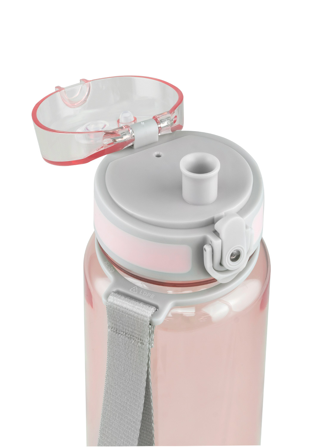 Носик бутылки надежно защищен откидной крышкой от любых загрязнений, а замок с фиксатором предотвращает случайное открывание. Бутылку можно легко открыть одной рукой и пить любимый напиток на ходу благодаря кнопке и удобному носику. Текстильный ремешок освободит руки при переноске бутылки, а ситечко-фильтр позволит пить охлажденный компот, оставляя остатки ягод и фруктов внутри.