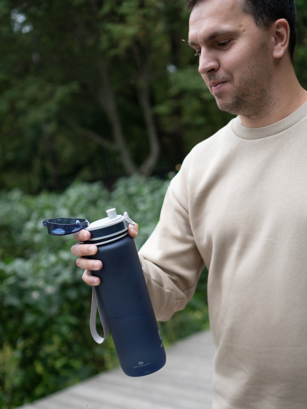 Тритан не выделяет вредный для человека бисфенол А, не впитывает запахи и не оставляет неприятный привкус. Бутылка из тритана сохранит вкус любимых напитков и идеально подойдет для многоразового использования: не деформируется и не потеряет внешний вид при активном использовании. Прекрасная замена одноразовым бутылкам воды из магазина.