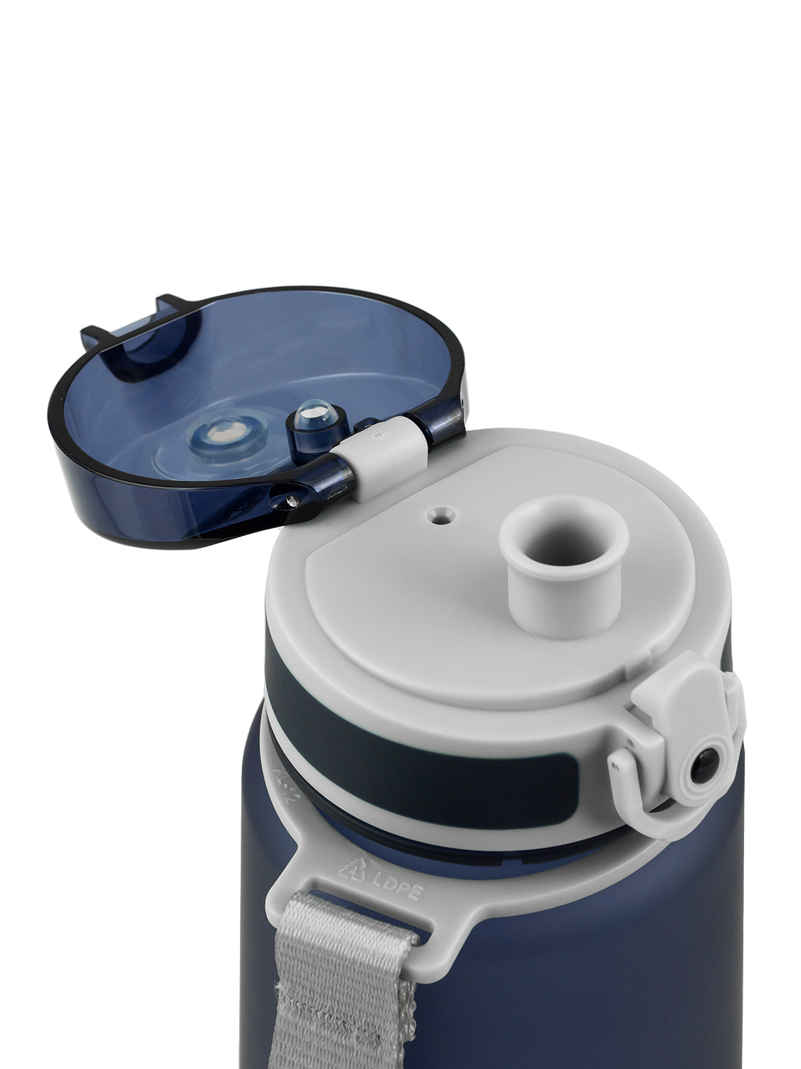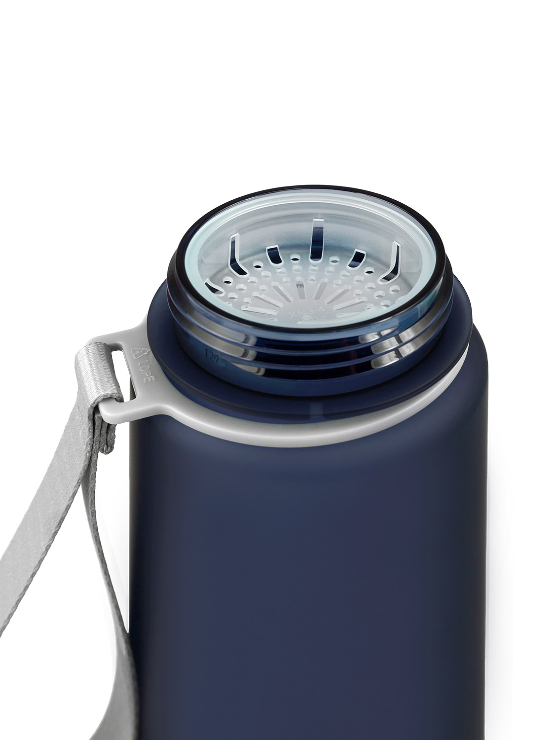 Носик бутылки надежно защищен откидной крышкой от любых загрязнений, а замок с фиксатором предотвращает случайное открывание. Бутылку можно легко открыть одной рукой и пить любимый напиток на ходу благодаря кнопке и удобному носику. Текстильный ремешок освободит руки при переноске бутылки, а ситечко-фильтр позволит пить охлажденный компот, оставляя остатки ягод и фруктов внутри.