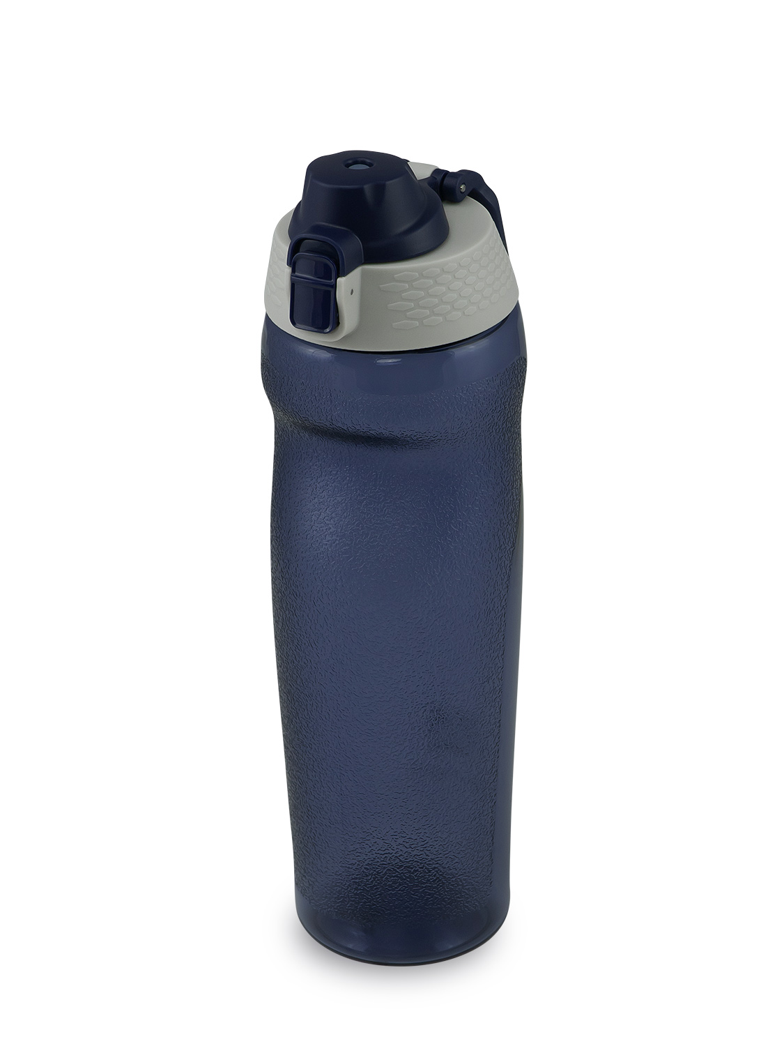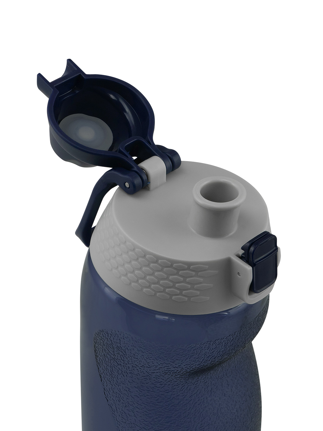 Особая форма и специальное покрытие бутылки не даст ей выскользнуть даже из вспотевших ладоней. Подходит для большинства подстаканников и держателей на тренажерах, беговых дорожках и велосипедах. Ее также можно переносить за петлю или закрепить карабином. Бутылка надежно защищена от случайного открывания кнопкой с фиксатором, и при этом легко открывается одной рукой. Более широкий, чем у повседневных бутылок из тритана, питьевой носик, а также отверстия для выхода воздуха не дают воде расплескаться даже при сильном и резком наклоне бутылки.