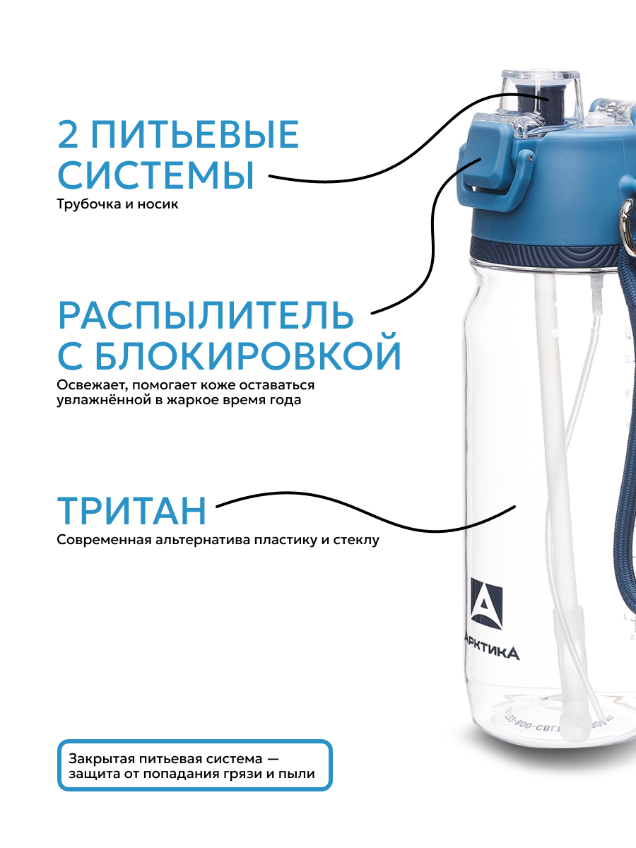 Бутылка для воды с трубочкой и распылителем всегда будет кстати в жару, на тренировке и во время пляжного отдыха. Достаточно нажать на рычаг с тыльной стороны крышки, чтобы в одно касание ощутить на коже приятную прохладу, похожую на бриз. При этом содержимое бутылки всегда под контролем: и у крышки, и у рычага есть предохранители от случайного нажатия.