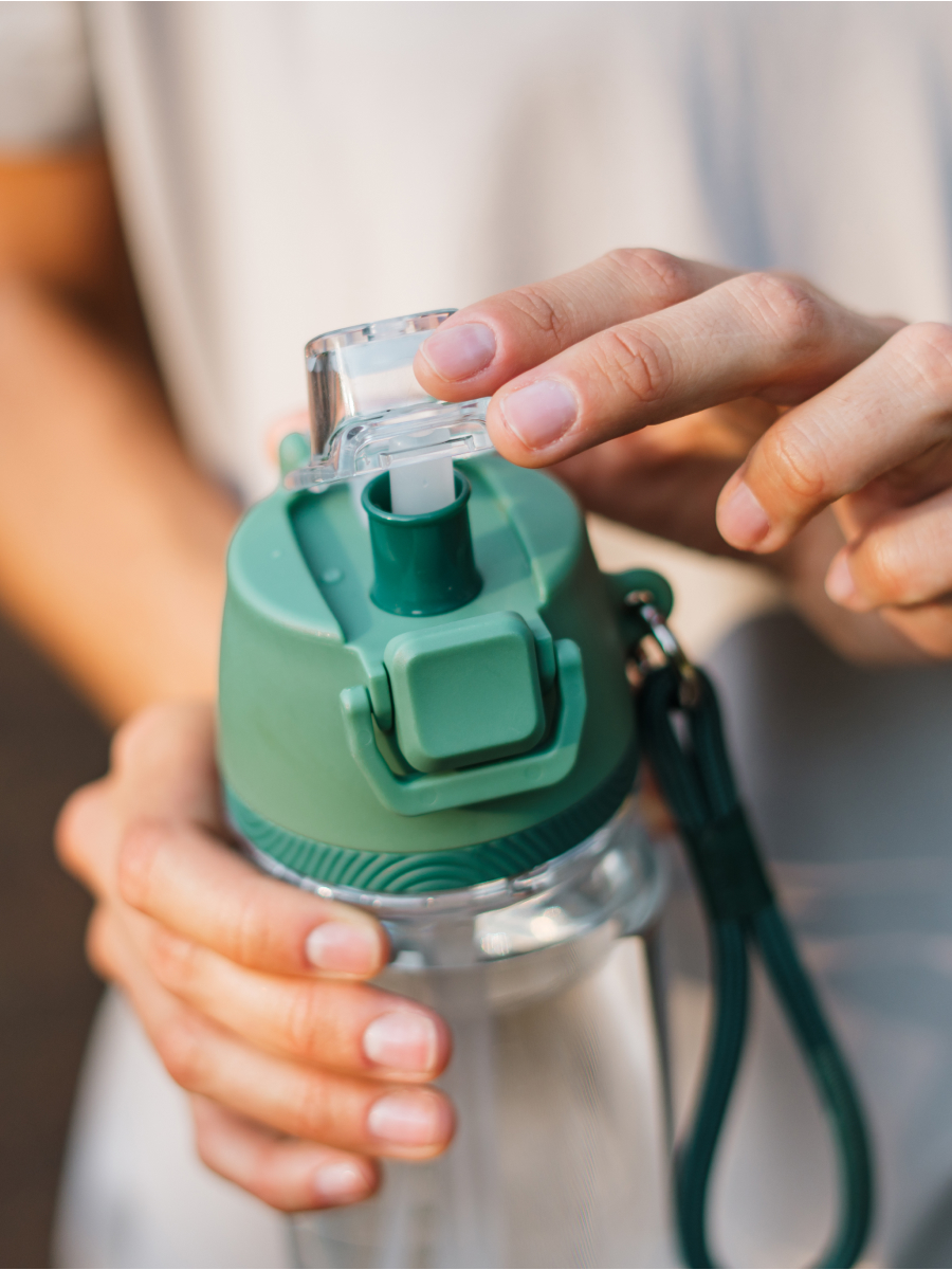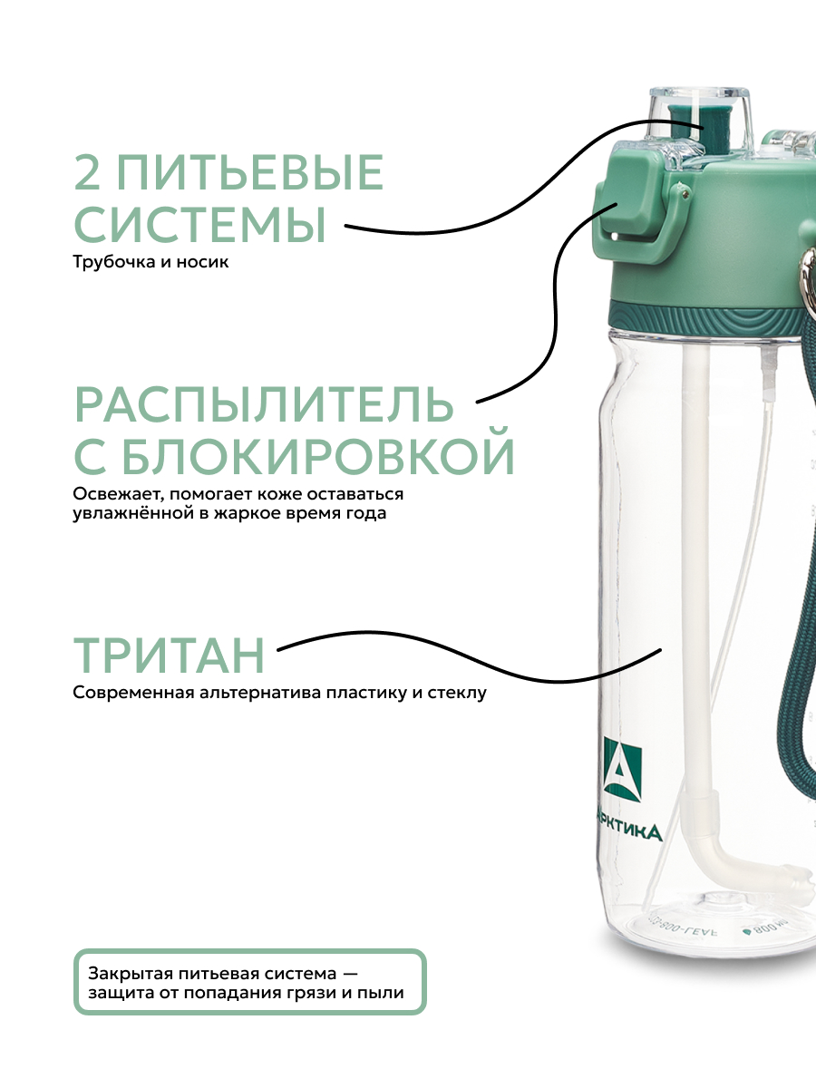 Бутылка для воды с трубочкой и распылителем всегда будет кстати в жару, на тренировке и во время пляжного отдыха. Достаточно нажать на рычаг с тыльной стороны крышки, чтобы в одно касание ощутить на коже приятную прохладу, похожую на бриз. При этом содержимое бутылки всегда под контролем: и у крышки, и у рычага есть предохранители от случайного нажатия.