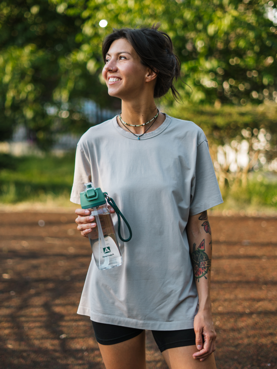 Tritan™ — современная альтернатива обычному пластику и стеклу, который сочетает в себе лучшие их качества. Корпус у бутылки прочный, износостойкий и легкий, как пластик, но прозрачный и безопасный для здоровья, как стекло. Еще она «переживет» падение с высоты человеческого роста, не боится кипятка до 90°С и остаётся прозрачной даже после активного использования.