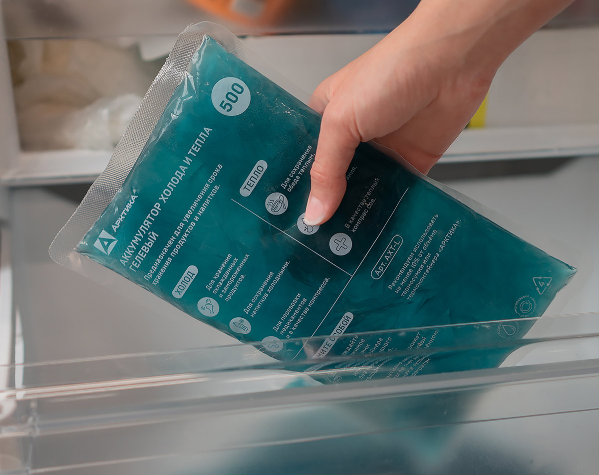 Рекомендуем всегда отталкиваться от размера вашей термосумки, чтобы расположить аккумуляторы сверху и снизу не менее 10% от ее объема. Например, к термосумке для ланча на 7,5 литров вам понадобятся аккумуляторы, объем которых в сумме составит не менее 700 мл (2 шт. АХТ-200 + АХТ-300 или АХТ-200 + АХТ-500).