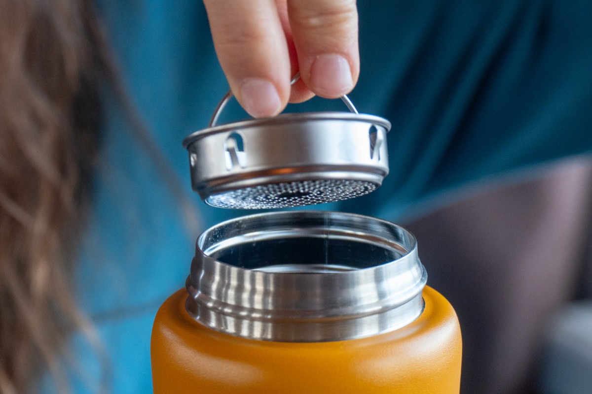 Ситечко устанавливается внутрь термокружки, удобно использовать и легко промывать.