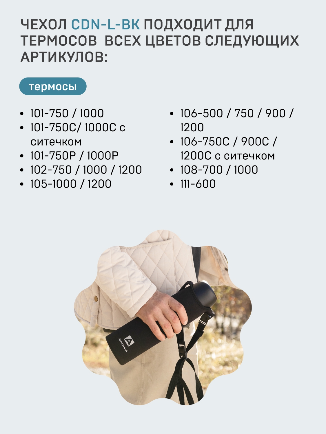 Размер чехла разработан специально под линейку питьевых термосов, термокружек и тритановых бутылок «Арктика» серии: 101-750, 101-1000P, 105-1200, 106-1200, 101-750С, 102-750, 106-750, 106-1200С, 101-750P, 102-1000, 106-750C, 106-1600, 101-1000, 102-1200, 106-900, 108-700, 101-1000С, 105-1000, 106-900C, 108-1000