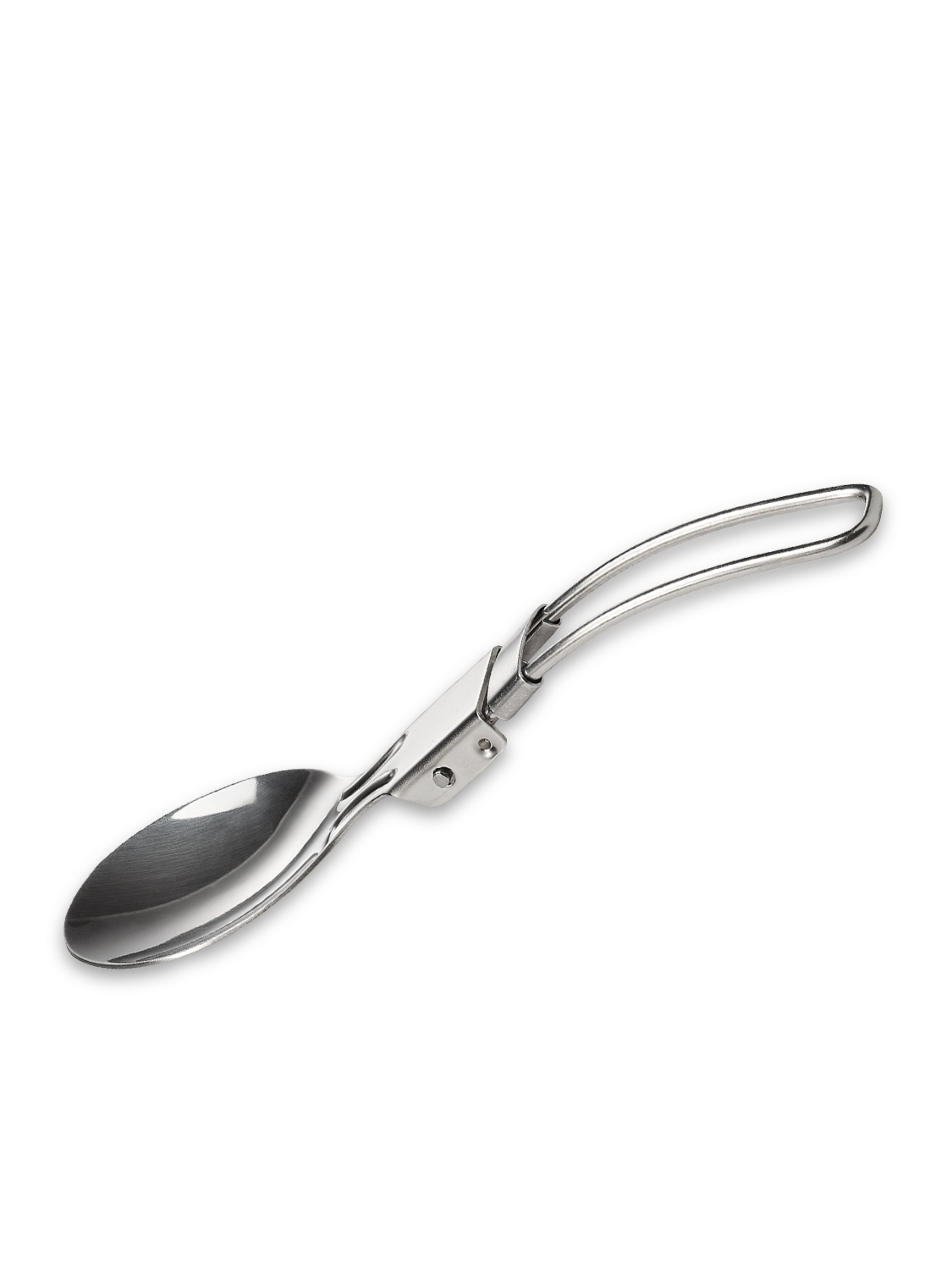 Складная ложка из пищевой нержавеющей стали 18/8, которая помещается в кармашек чехла для термоса для еды. Также она не займет много места в сумке или рюкзаке и будет всегда кстати в качестве запасной или дополнительной ложки, если вы планируете есть не одни.